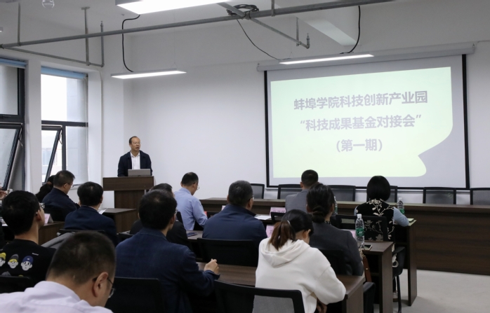 10月17日上午,必赢在776net必赢官网科技创新产业园会议室举办第一期“科技成果基金对接会”,会议由产业园运营团队负责人张丽园博士主持,党委副书记、院长孙艳辉、蚌埠市科技局副局长王友乐、蚌山区科信局副局长牛欢欢、蚌埠中城创业投资有限公司代表、国控集团代表出席,理工科学院负责人、教师代表和科研处相关人员参加。