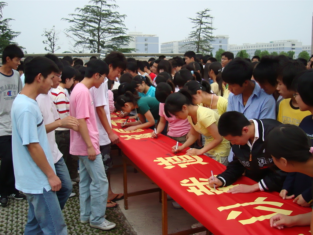 经济与管理系举行“学以载道、诚信为本”拒绝考试作弊签名活动