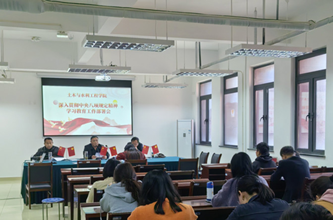 此次部署会的召开,标志着土木与水利工程学院深入贯彻中央八项规定精神学习教育工作全面启动。学院将以高度的政治责任感和使命感,扎实推进学习教育工作,努力打造一支政治坚定、作风优良、业务精湛的高素质教职工队伍,为学校和学院各项事业的发展提供坚强的政治保障和纪律保障。(撰稿:张饮;编辑:张饮、毛星懿;审核:张兆亮、黄灿)