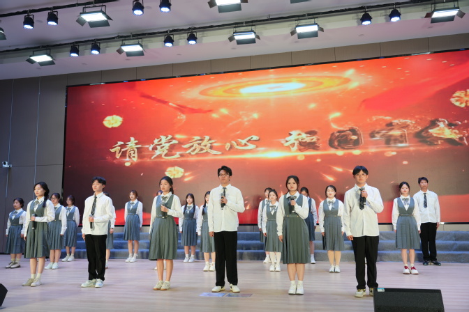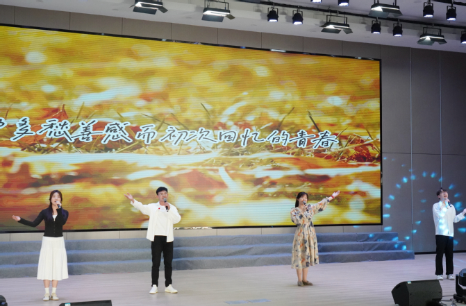 大会中,师生通过文艺节目抒写青春志向。经济与管理学院、文学与教育学院联合朗诵《强国有我,青春担当》,以激昂词句宣示青年投身强国伟业的决心;文学与教育学院舞蹈《国色》以中国舞演绎中华文化之美,展现文化自信;教师张晶、丁瑞鸿与爱乐协会学生姜璟琪、阮迎雪共同演绎经典歌曲《光阴的故事》、薪火合唱团压轴献唱《彩虹》,以青春之声唱响对未来的坚定信念,将活动推向高潮。