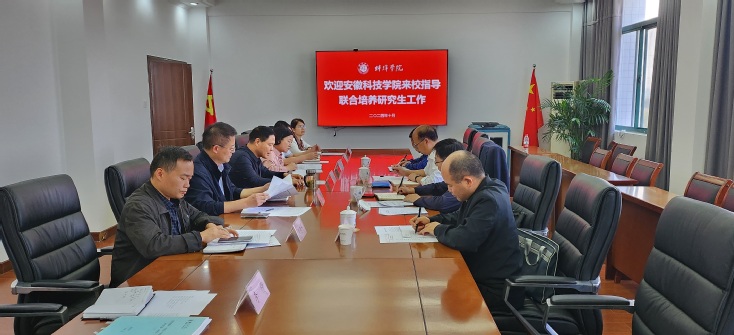10月11日下午,安徽科技学院党委委员、副院长王孝义一行到必赢调研指导研究生联合培养工作,校党委委员、副院长郭有强,科研处、机械与车辆工程学院、经济与管理学院等相关部门负责同志,相关研究生导师及联合培养研究生参加调研座谈会。