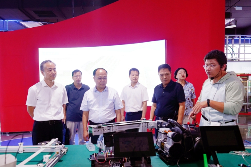 会后,陈国龙书记一行在常州工学院领导陪同下,实地考察了特种电机实验室(磁悬浮电机)、大飞机模拟舱和智能产线实验室,详细了解了学校在高端装备制造、航空航天仿真模拟及智能制造等领域的科研成果转化与产业学院建设情况。