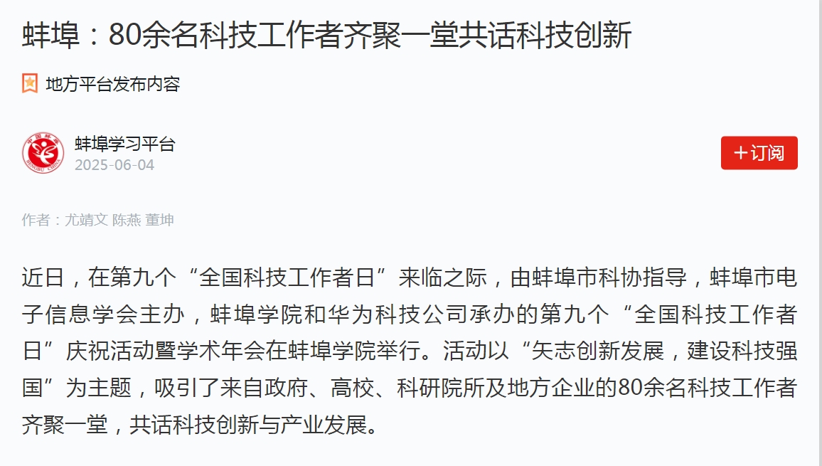 【学习强国】蚌埠:80余名科技工作者齐聚一堂共话科技创新