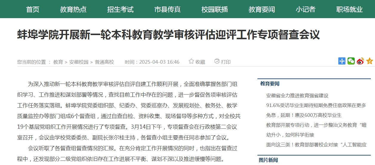 【中安教育网】776net必赢官网开展新一轮本科教育教学审核评估迎评工作专项督查会议
